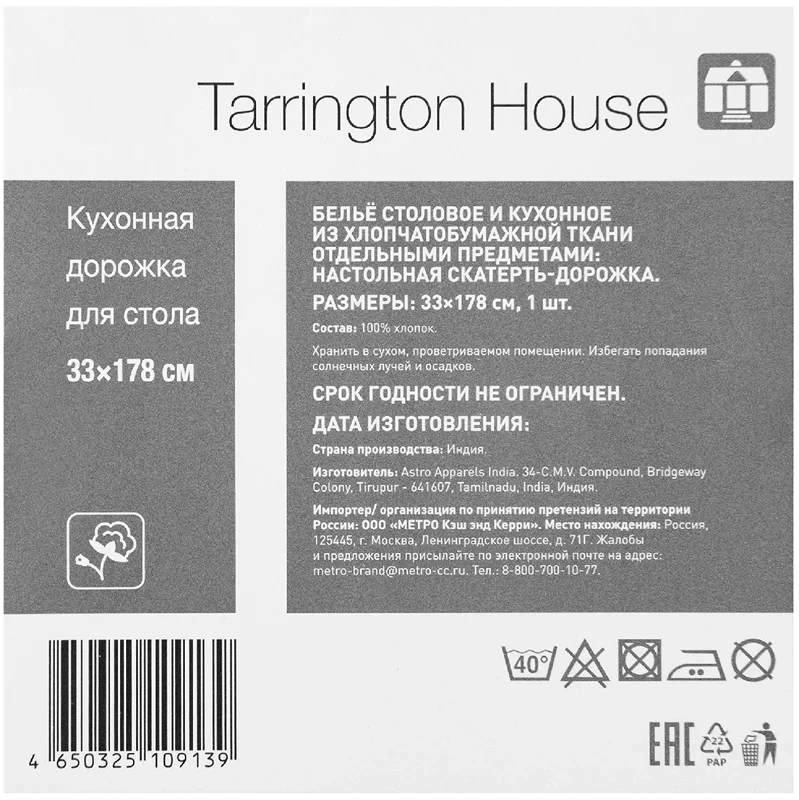 | Комплектация | дорожка для стола - 1 шт. 33х178см |