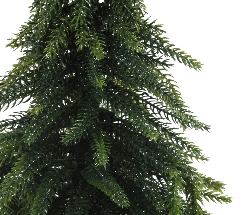 Компактная искусственная ель высотой 35 см уже установлена в очаровательный мешочек из натуральной мешковины. Это готовое праздничное решение, которое не требует подставки и дополнительных усилий — просто поставьте её на стол, полку или камин, и атмосфера волшебства создана. Пушистые ветки из качественного ПВХ выглядят реалистично, а милый дизайн делает её прекрасным подарком и украшением любого интерьера.