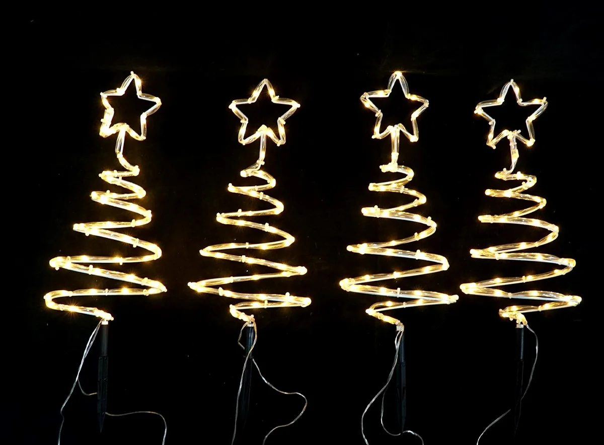 Набор из четырех очаровательных световых елочек высотой 57 см создаст гармоничную праздничную композицию в вашем саду или у входа в дом. Каждое дерево украшено 48 теплыми белыми светодиодами, а вместе они образуют 192 точки уютного мерцания, расставляя изящные световые акценты в вечернем пейзаже. Благодаря влагозащите IP44 и прочным пластиковым каркасам с медными элементами елочки устойчивы к непогоде и сохранят безупречный вид всю зиму. Комплект работает от сети через длинный кабель 5 метров с безопасным напряжением 6В, а общая мощность всего 4.8 Вт делает его экономичным решением для продолжительной работы. Легкие (800 г) и компактные, эти сияющие деревца легко разместить вдоль дорожки, у крыльца или создать из них симметричную композицию — их нежное свечение наполнит ваше пространство теплом и предвкушением праздника.