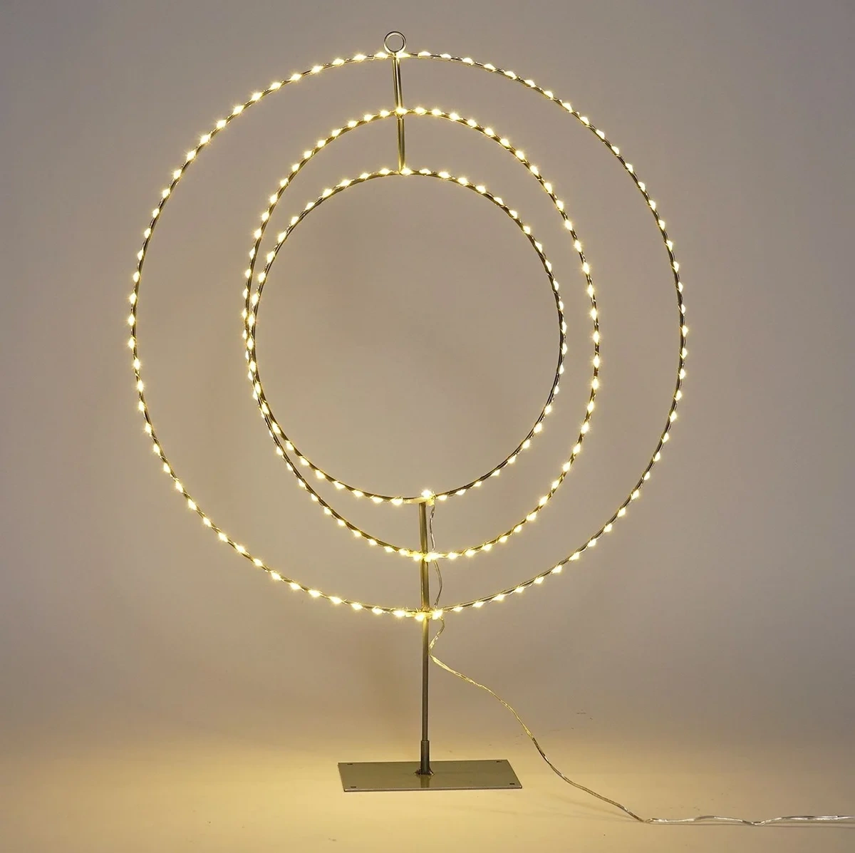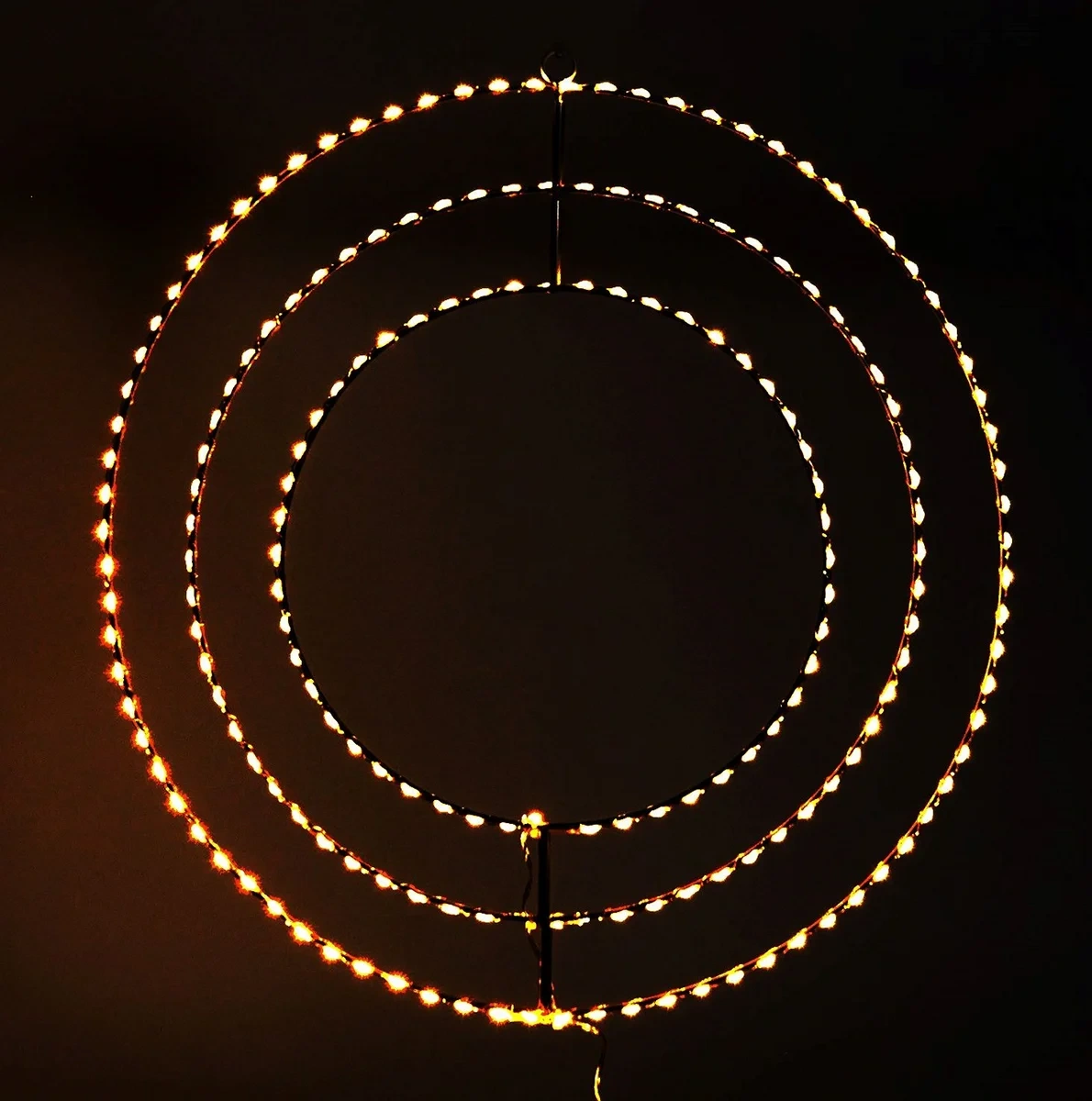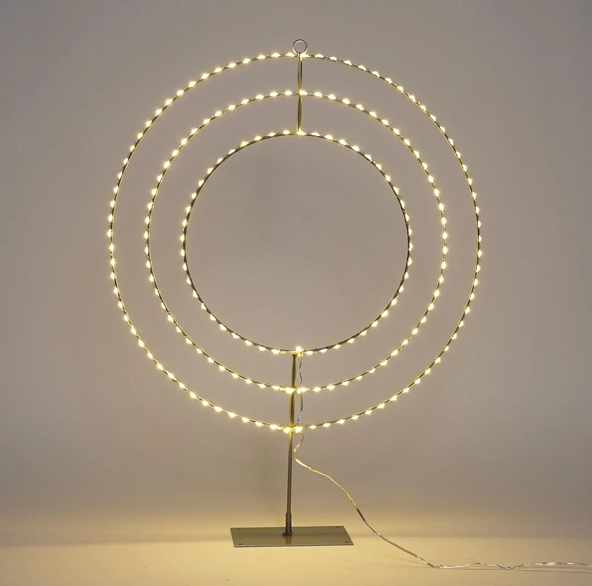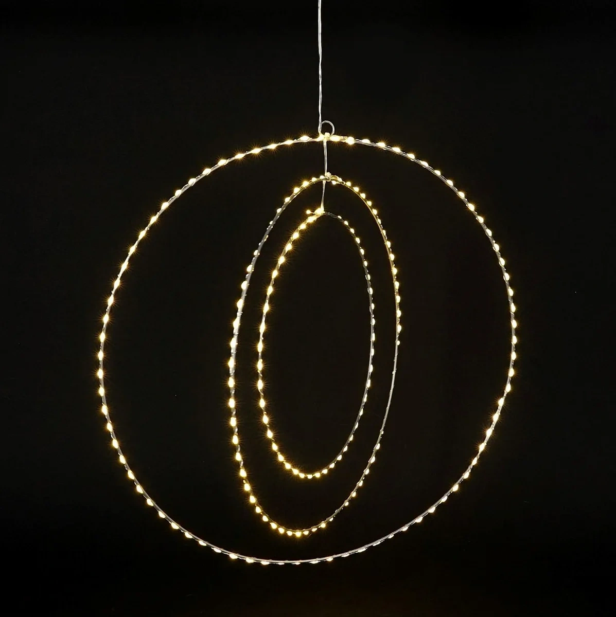 Универсальная световая звезда диаметром 50 см с возможностью использования в двух вариантах: для подвешивания с функцией вращения на 360 или как настольная композиция со специальной подставкой. Сто девяносто два теплых белых светодиода создают мягкое равномерное свечение, превращая звезду в эффектный праздничный акцент. Прочная железная конструкция с медными элементами обеспечивает долговечность, а вращающийся механизм позволяет любоваться сиянием с любого ракурса. Защита IP44 позволяет размещать звезду как в интерьере, так и под открытым небом. Компактный кабель длиной 3 метра и безопасное напряжение 4.5В обеспечивают удобство использования, а энергопотребление всего 6 Вт делает эксплуатацию экономичной. Небольшой вес (1.5 кг) и продуманная конструкция делают эту сияющую звезду идеальным решением для украшения елки, создания рождественской композиции на столе или подвешивания у входа в дом.