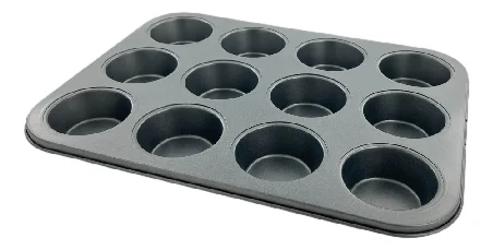 Форма для маффинов из углеродистой стали с антипригарным покрытием идеальна для подойдет для выпечки. Имеет 12 ячеек. Предназначена для выпечки кексов и капкейков. Металлическая прямоугольная посуда идеальна для приготовления десертов, печенья с шоколадом и миниатюрных пасхальных куличей. Открытая порционная емкость с высокими круглыми ячейками диаметром 6,7 см может использоваться для выпекания бисквита, пирожных, корзиночек, суфле и множества кондитерских изделий из бисквитного, шоколадного теста или творога. При изготовлении фигурных корзинок использовалась жаропрочная сталь. Универсальные емкости с устойчивым дном подходят для готовки, запекания в духовке, а так же заморозки продуктов в холодильнике. Стальная посуда с антипригарным покрытием не вызывает сложностей в процессе мытья, позволяет приготовить вкусные маффины, мини торты и хлеб.