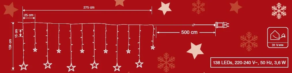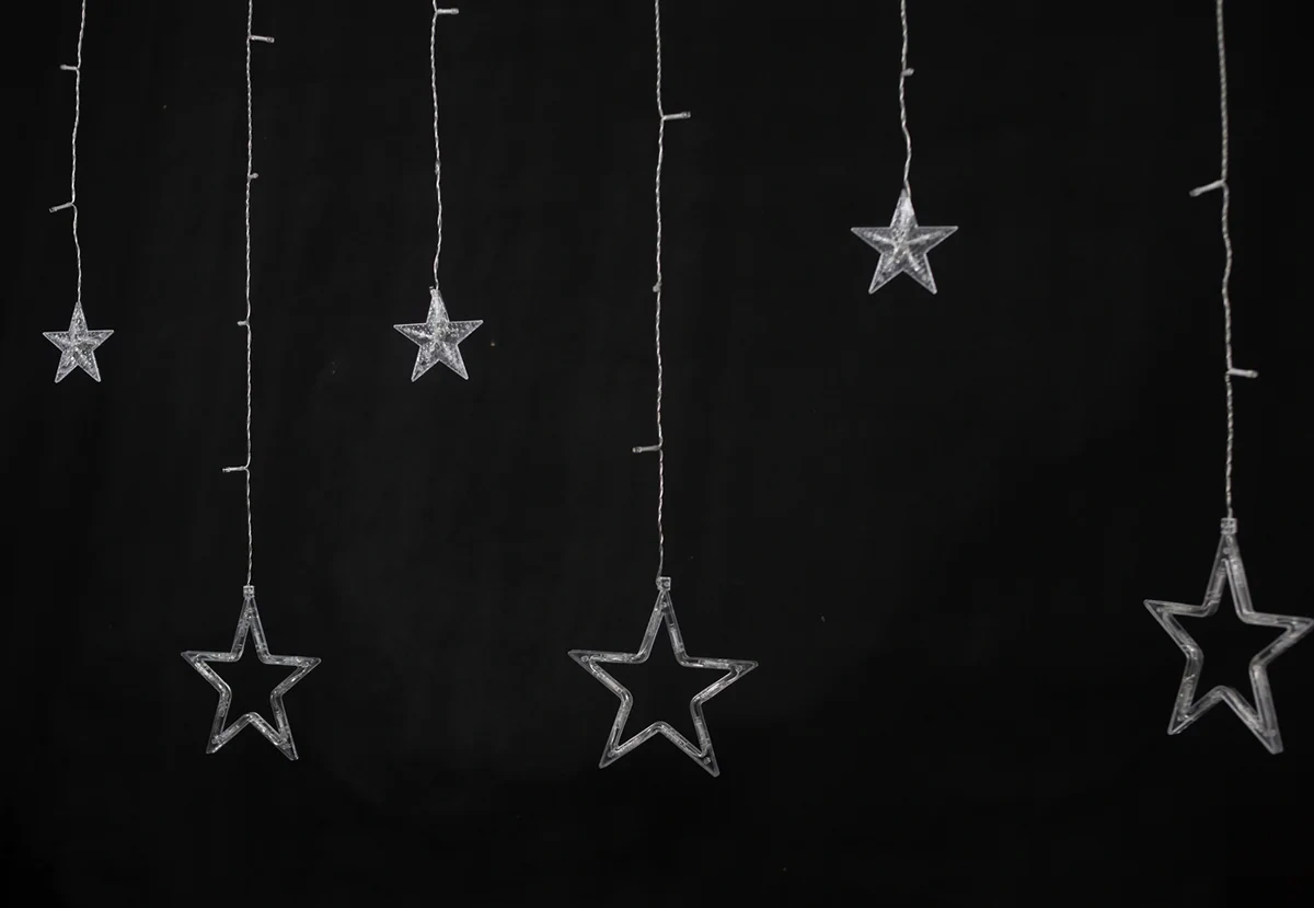 Нежность и изящество в каждой детали! Сосульки со звездами — это двойная порция волшебства. Теплый белый свет создает мягкое сияние, а звезды добавляют праздничного шарма. Не требует контроллера — просто подключите и наслаждайтесь. Идеально для окон, зеркал и создания романтической атмосферы в спальне.
