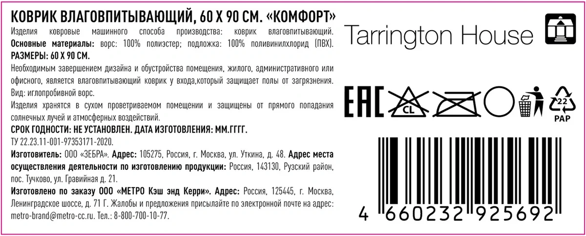 | Бренд | Tarrington House |