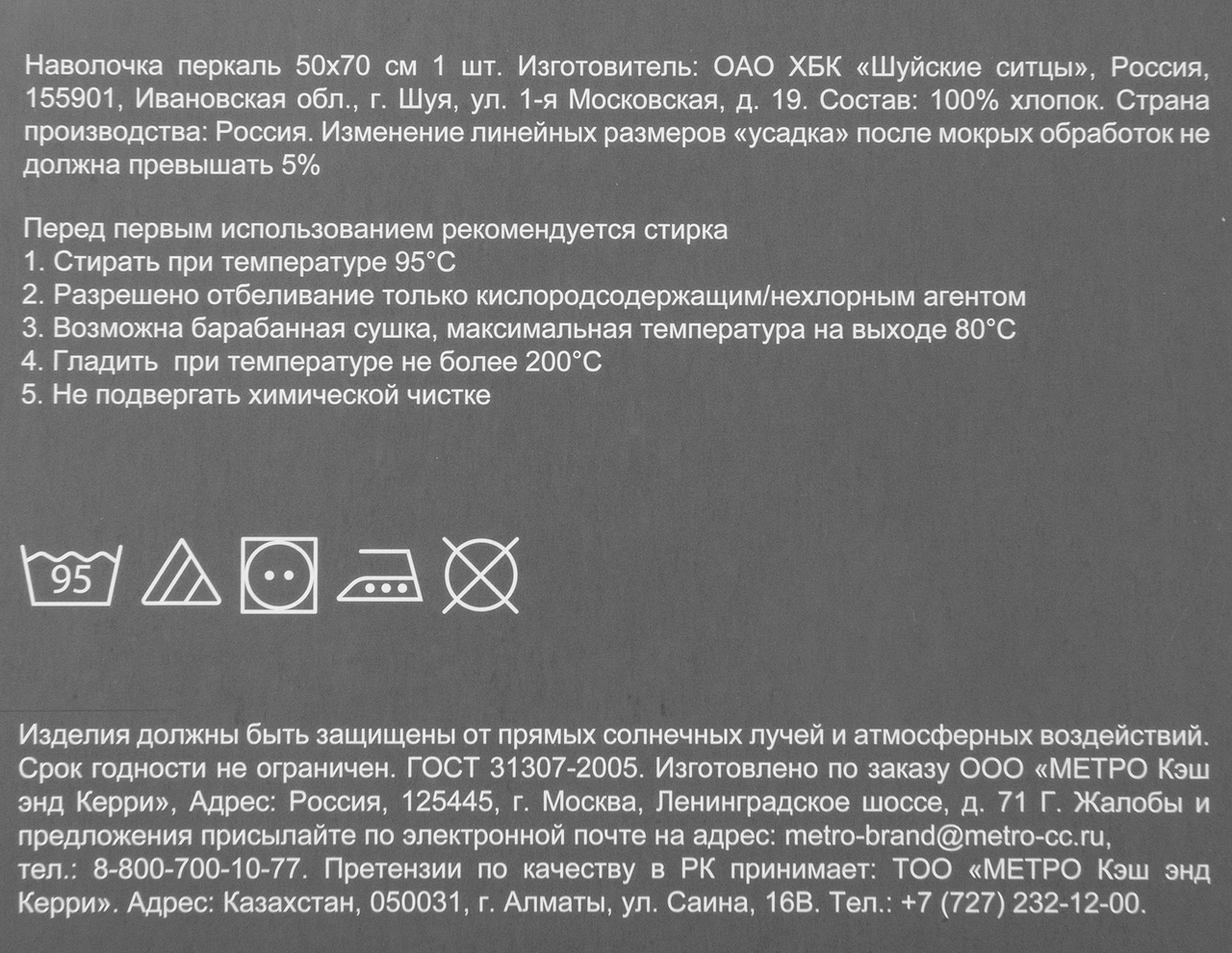 | Комплектация | наволочка - 1 шт. 50х70см |