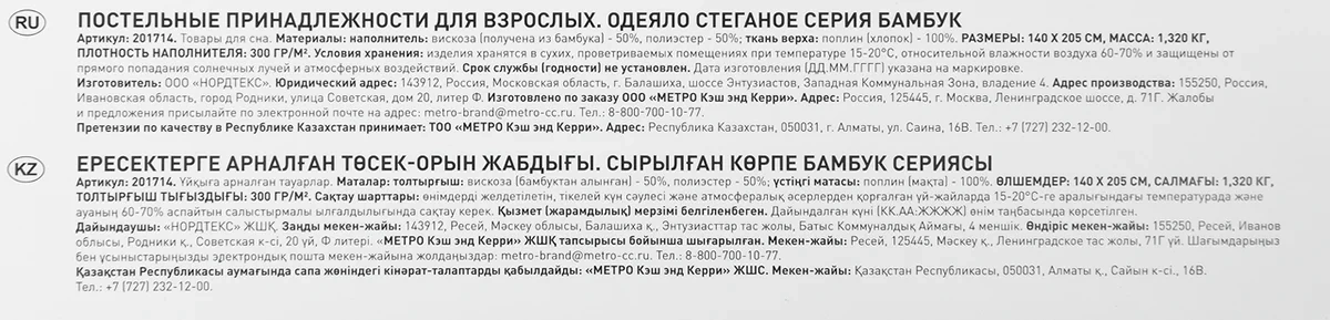 - 100% бамбук. Одеяло изготовлено из долговечного и качественного материала, что обеспечивает его длительный срок службы. Материал пропускает воздух, что предотвращает прение кожи и обеспечивает комфорт в любое время года.