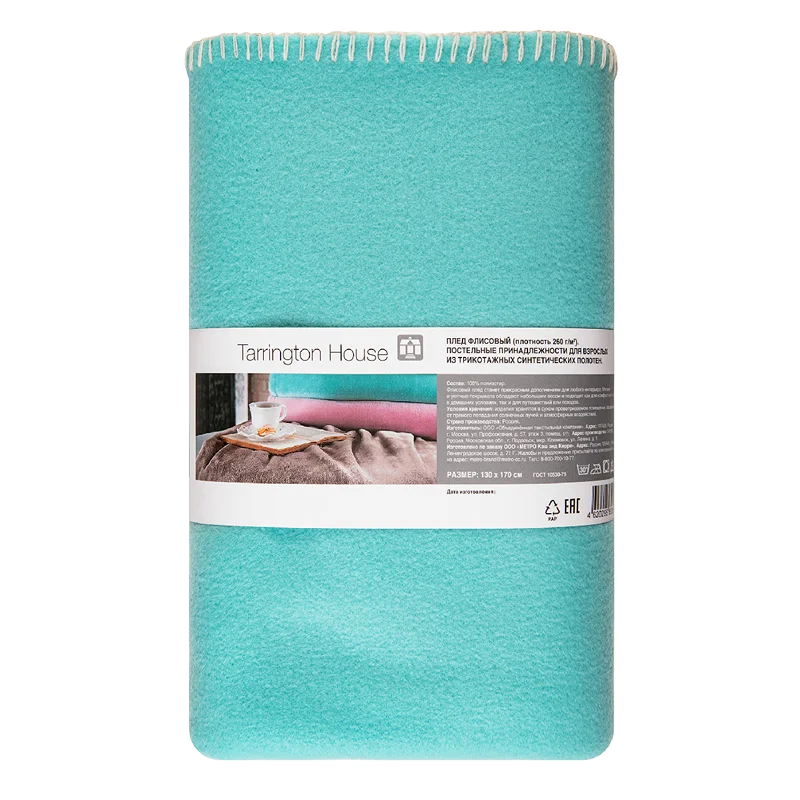 Tarrington House Плед флисовый бирюзовый, 130 х 170см удачно вписывается в комнату с любым интерьером. Это плотное изделие согревает холодными вечерами, а летом его можно использовать для застилания кровати. Плед умеренно-мягкий, нежный, приятный даже для очень чувствительной или детской кожи. Плед относительно легкий, не мнется и быстро сохнет. Это изделие можно стирать на деликатном режиме при низкой температуре в стиральной машине. Благодаря безопасным красителям, плед не выцветает и долгое время сохраняет первоначальный внешний вид. Такое изделие станет удачным украшением любой комнаты.