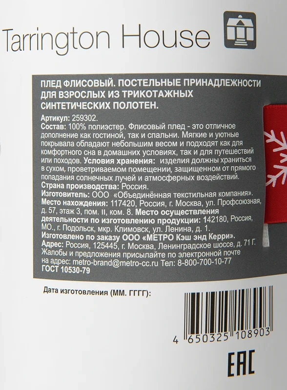 | Комплектация | плед - 1 шт. 130 х 170см |