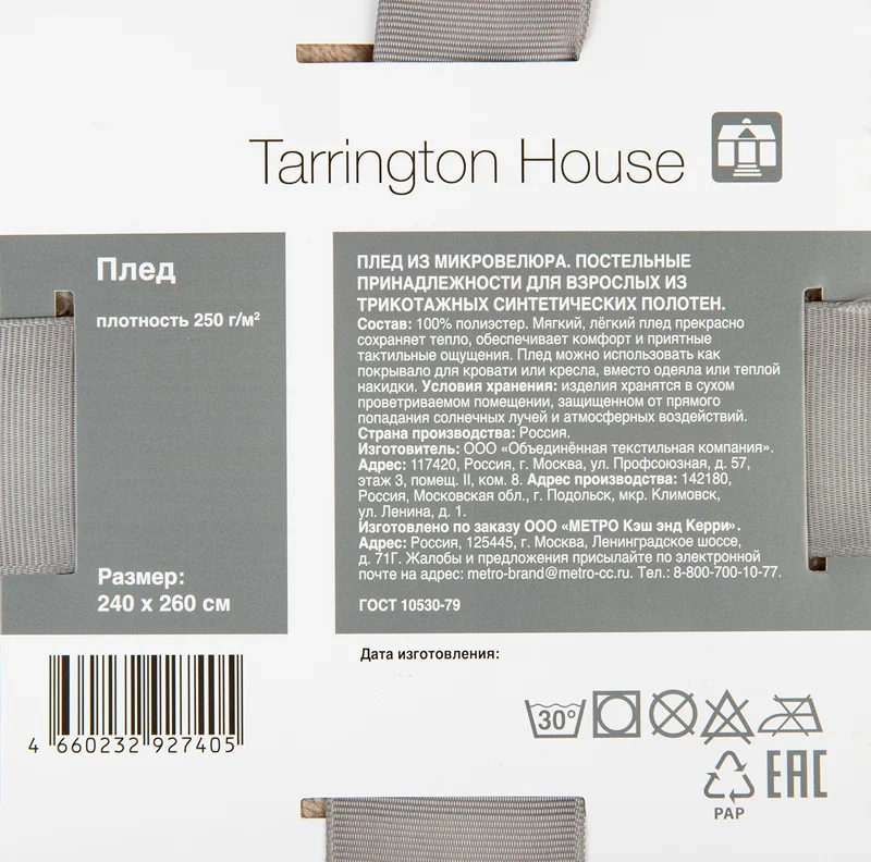 Плед микровелюр Tarrington House, бежевый, 240 x 260 см изготовлен для всех, кто ценит комфорт, стиль и качество. Изделие выполнено из мягкого и приятного на ощупь микровелюра. Материал обеспечивает тепло и уют в холодную погоду, позволяет согреться в период, когда еще не начался отопительный сезон. Оптимальный размер модели 240 х 260 см позволяет полностью покрывать кровать, кресло или диван. Нейтральный дизайн в бежевом цвете придает пледу элегантный внешний вид. Он сочетается с разными стилями интерьера: от классики до современного лофта, хай-тека, конструктивизма. Велюр обладает высокой прочностью и длительным сроком эксплуатации. Его легко стирать вручную или в машинке с использованием ополаскивающих средств. При этом текстиль сохраняет первоначальную мягкость и цвет на долгое время. Модель предназначена для повседневного использования, так как обладает хорошими теплоизоляционными свойствами. Она надолго сохраняет тепло и позволяет чувствовать себя комфортно. Плед можно использовать как в спальне, так и в гостиной или на открытом воздухе: во время пикника, барбекю, прогулки. Плотный микровелюр достаточно легкий и воздухопроницаемый, поэтому позволяет коже дышать и не перегреваться.