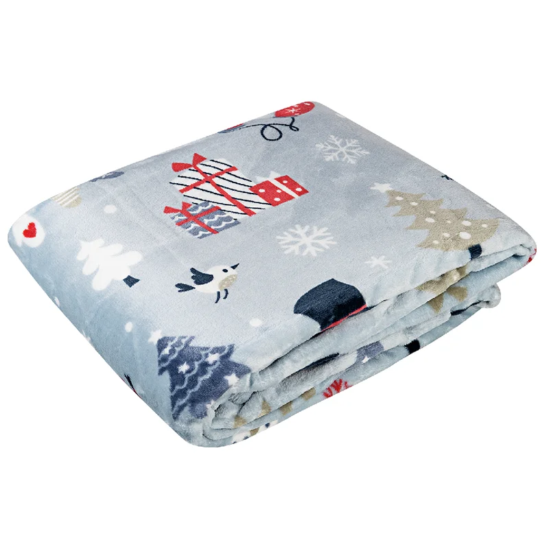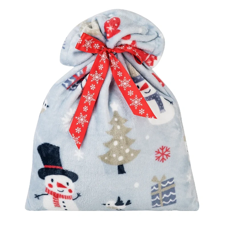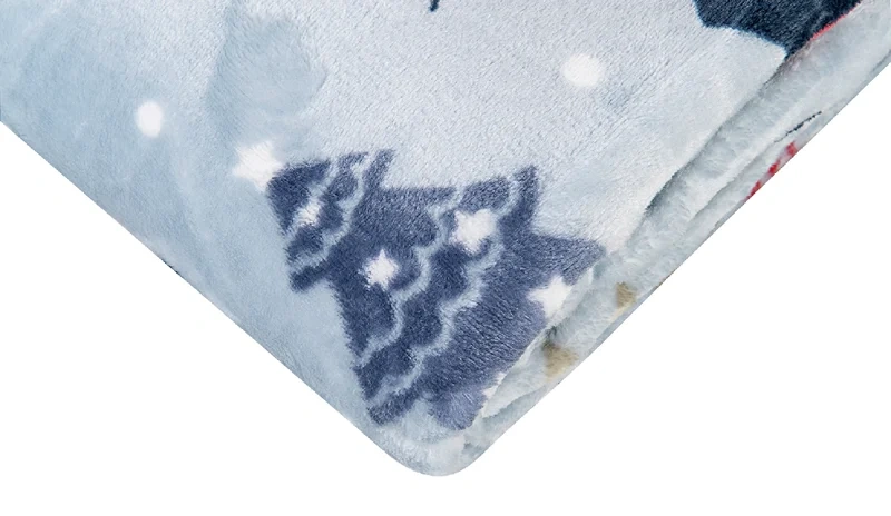 Tarrington House Плед микровелюр с сумкой синий с принтом снеговик, 150 х 200см