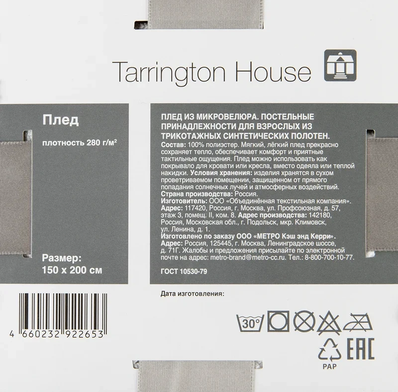 Tarrington House Плед шоколадный микрофибра велюровый 280 г, 150 x 200 см выполнен из мягкого и приятного на ощупь материала. Он обеспечивает тепло и уют в холодную погоду, позволяет согреться в период, когда еще не начался отопительный сезон. Оптимальный размер модели позволяет полностью покрывать кровать, кресло или диван. Нейтральный дизайн в шоколадном цвете придает пледу элегантный внешний вид. Он сочетается с разными стилями интерьера: от классики до современного лофта, хай-тека, конструктивизма. Плед обладает высокой прочностью и длительным сроком эксплуатации. Его легко стирать вручную или в машинке с использованием ополаскивающих средств. При этом текстиль сохраняет первоначальную мягкость и цвет на долгое время. Модель предназначена для повседневного использования, так как обладает хорошими теплоизоляционными свойствами. Она надолго сохраняет тепло и позволяет чувствовать себя комфортно. Плед можно использовать как в спальне, так и в гостиной или на открытом воздухе: во время пикника, барбекю, прогулки. Плотный материал достаточно легкий и воздухопроницаемый, поэтому позволяет коже дышать и не перегреваться.