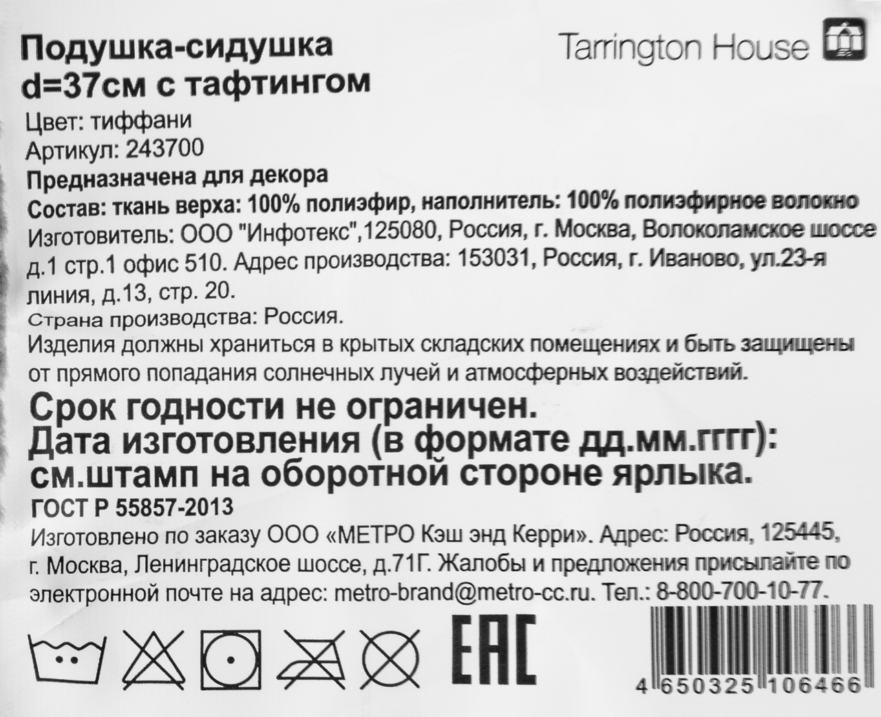 | Комплектация | подушка для мебели - 1 шт. 37х37см |