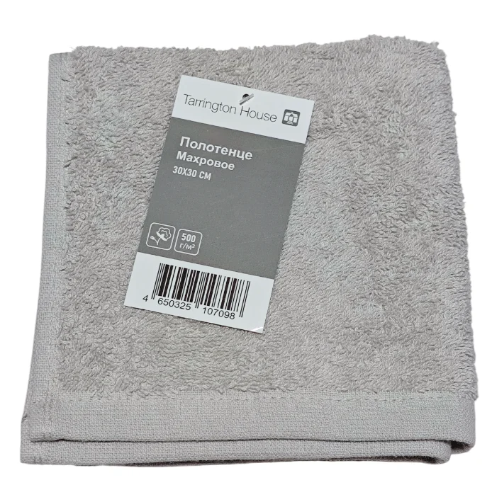 Tarrington House Полотенце хлопок серое махровое 500 г/м2, 30 х 30см