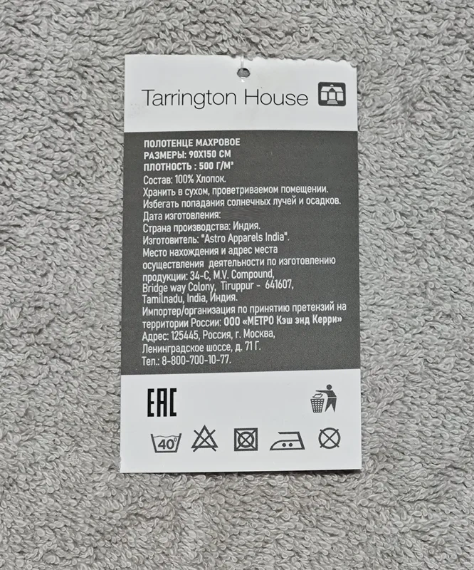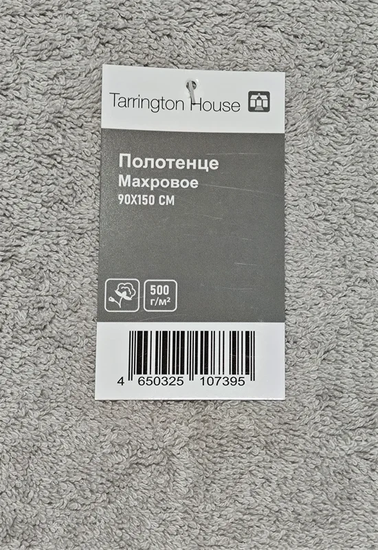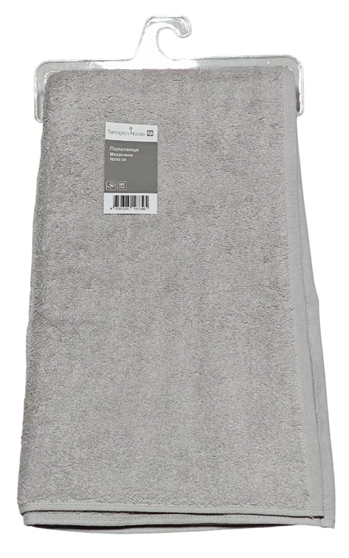 Tarrington House Полотенце хлопок серое махровое 500 г/м2, 90 х 150см