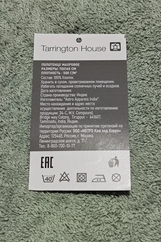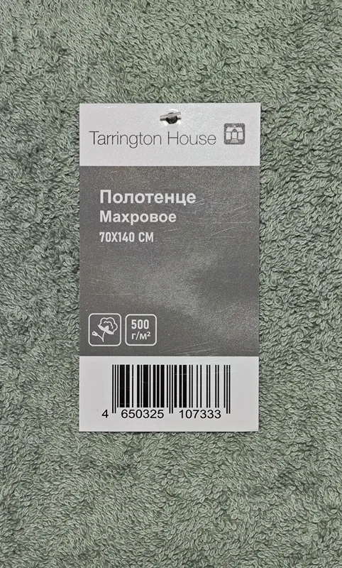 Tarrington House Полотенце хлопок зеленое махровое 500 г/м2, 70 х 140см