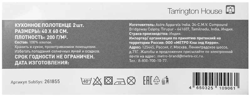 | Комплектация | полотенце кухонное - 2 шт. 40х60см |