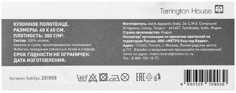 | Комплектация | полотенце - 1 шт. 40х60см |