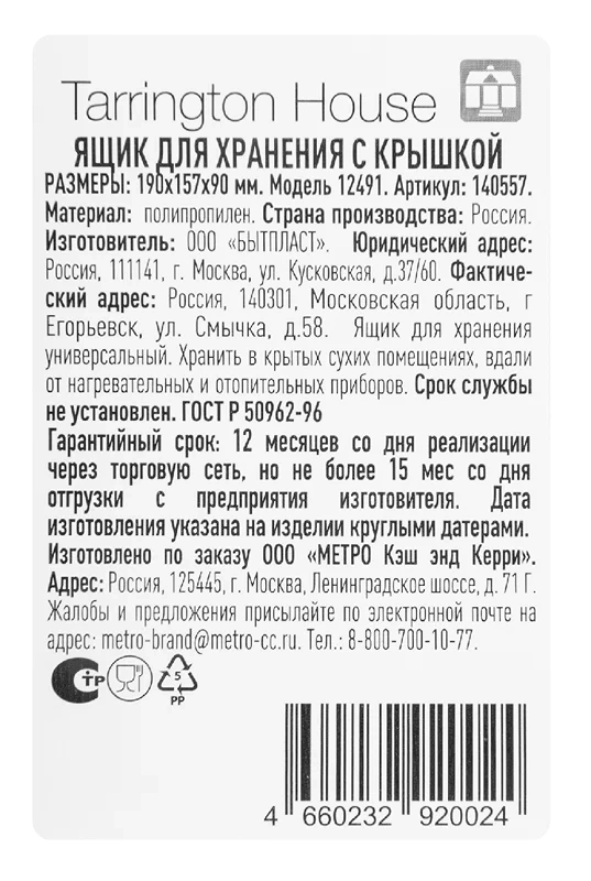 Tarrington House Ящик с крышкой 19 x 15.7 x 9 см, 2 л производится из крепкого прозрачного пластика. Подойдет для хранения батареек, детских вещей. Ящик будет удобен и на даче для хранения инвентаря, пакетов, крышек для банок, ниток и веревок. Можно использовать и для хранения продуктов, специй, сахара и соли. Компактные габариты позволяют спрятать ящик в шкафу от посторонних глаз. Удобная крышка с фиксаторами исключает попадание влаги внутрь и выпадения содержимого.