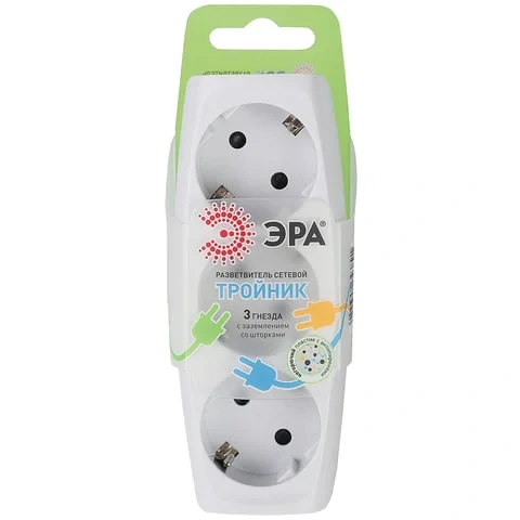 Тройник Эра 3 розетки, с заземлением, со шторками, белый, SP-3e-W