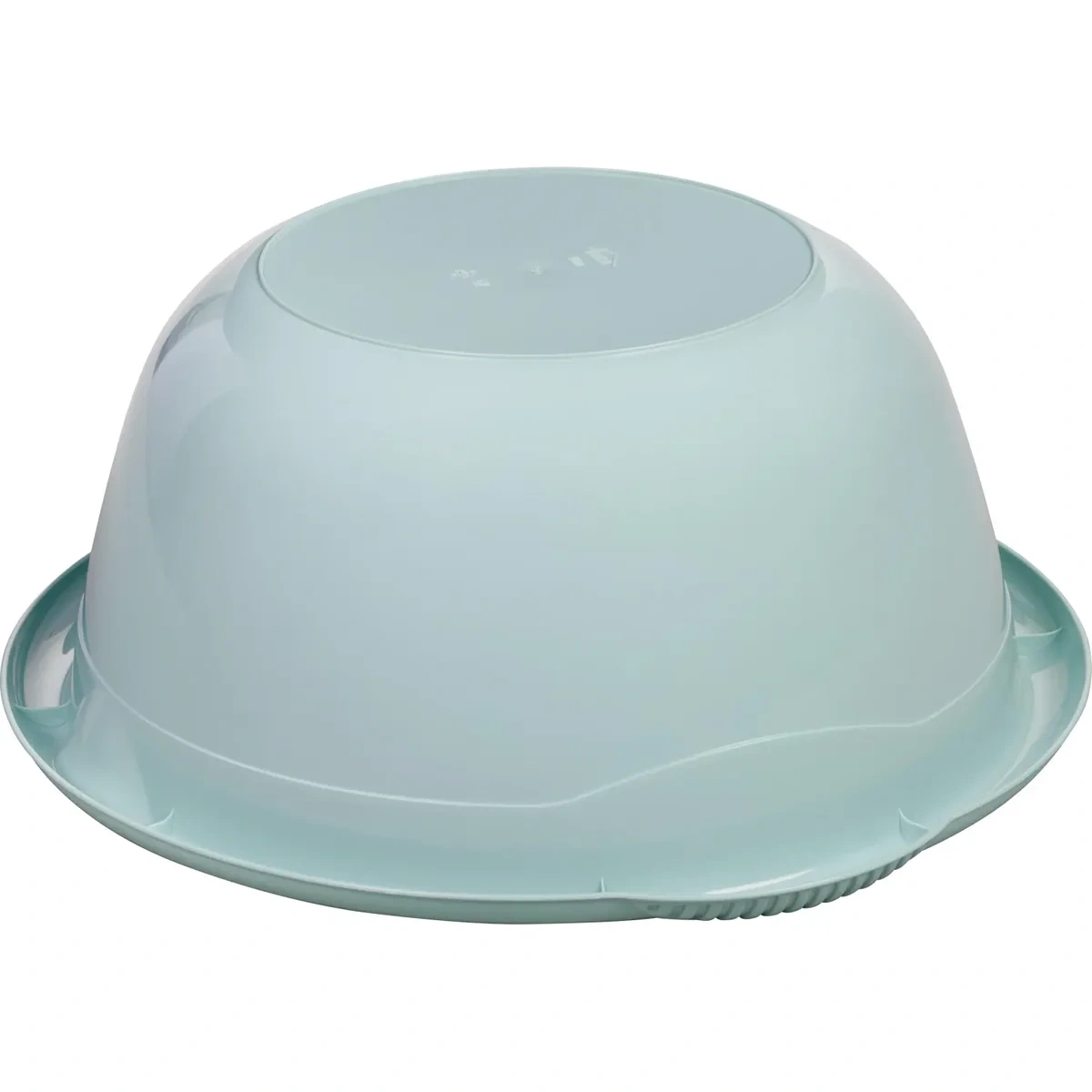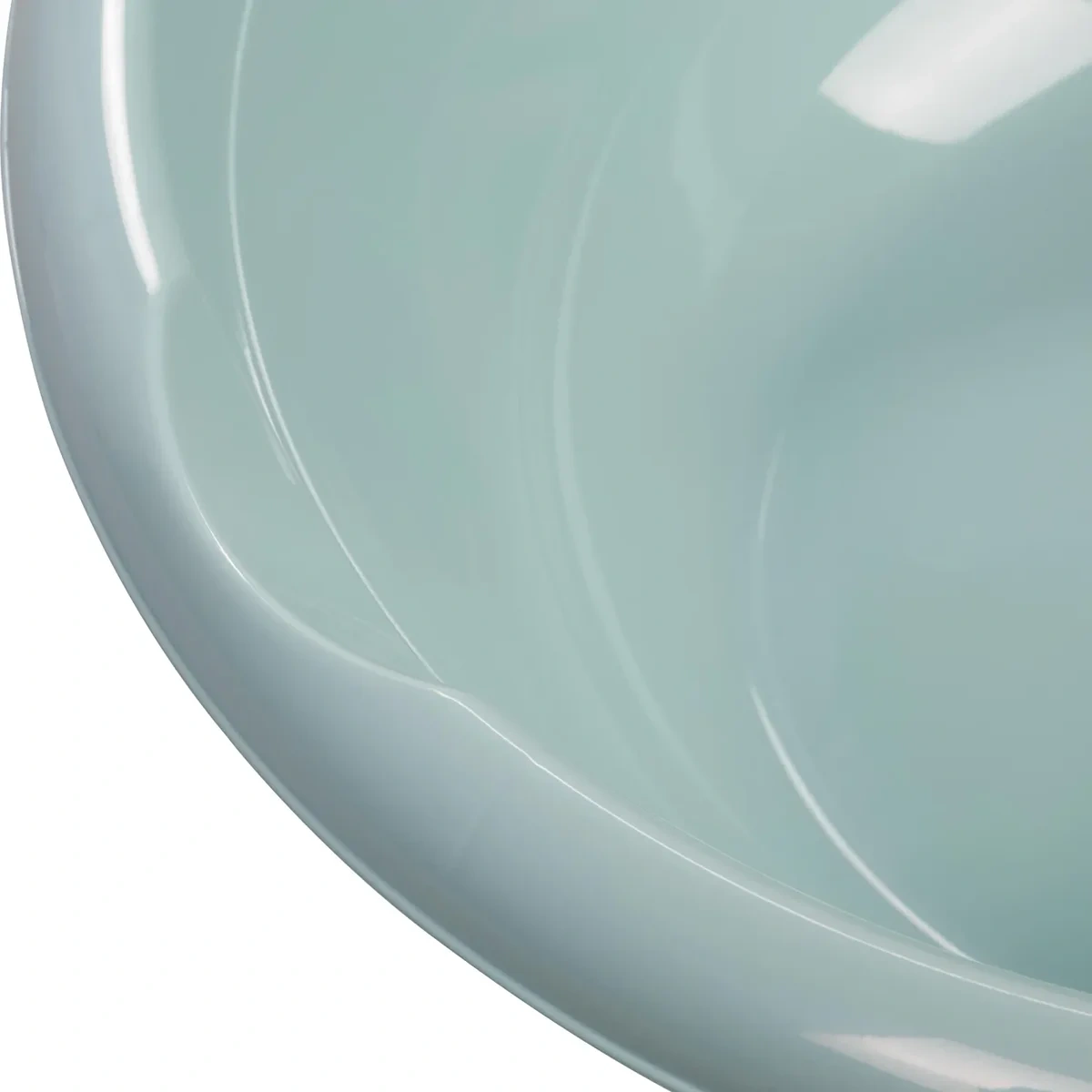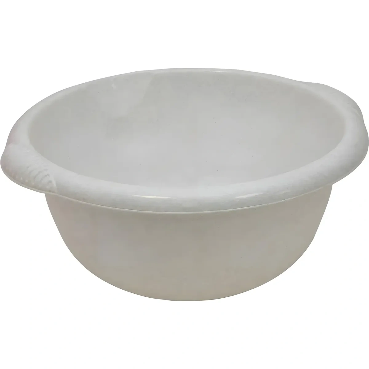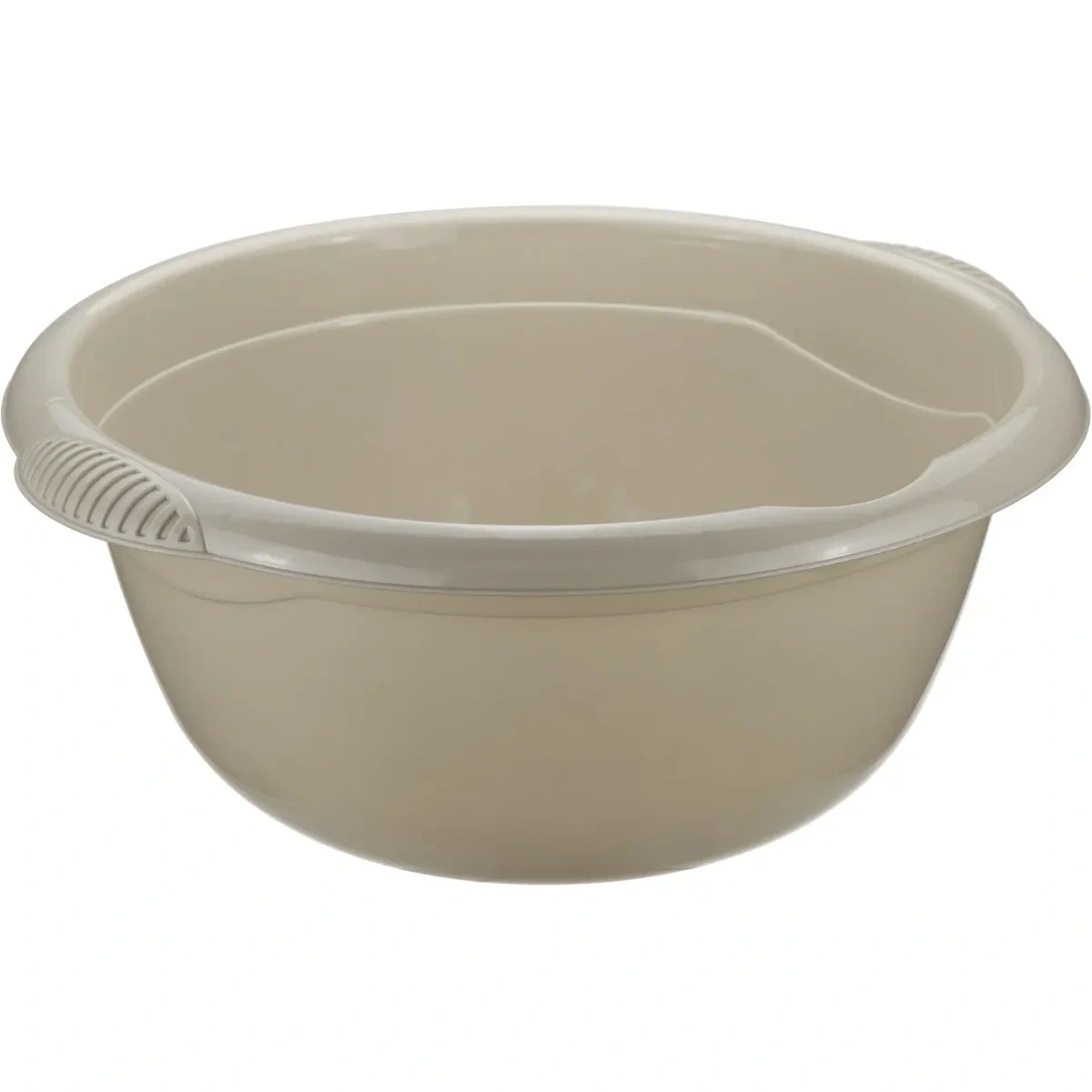 Таз выполнен в круглой форме и оснащен ребристыми ручками, которые предотвращают соскальзывание рук, даже если они мокрые. В комплекте отсутствует крышка.
