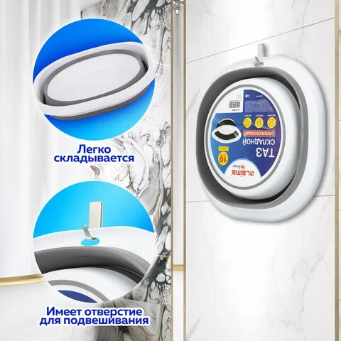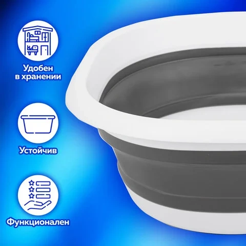 Таз легко складывается и раскладывается, очень устойчивый. Имеет отверстие для хранения в подвешенном состоянии. Может использоваться во время уборки, как емкость для хранения игрушек, для грязного белья и разных хозяйственных мелочей, для сбора ягод и грибов. Высота таза в сложенном виде – 5,9 см, в разложенном – 14,5 см.
