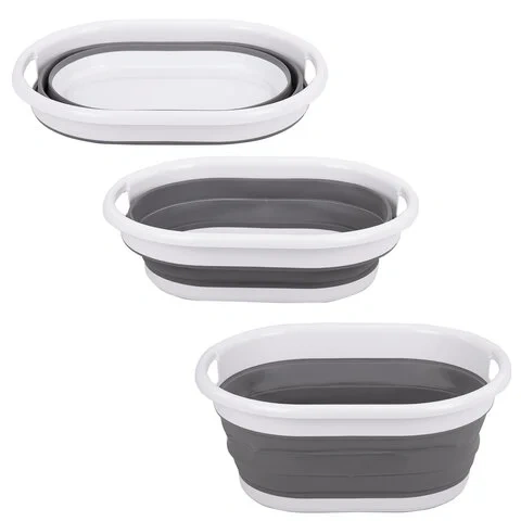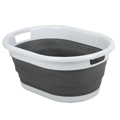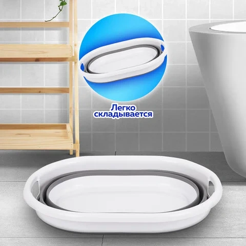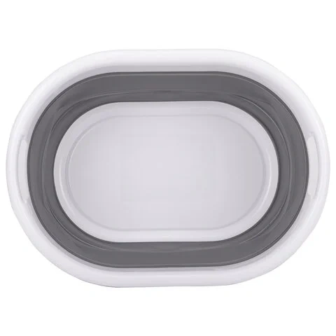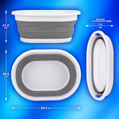 Таз легко складывается и раскладывается, очень устойчивый. Может использоваться во время уборки, как емкость для хранения игрушек, грязного белья и разных хозяйственных мелочей, для сбора ягод и грибов. Высота таза в сложенном виде – 7,5 см, в разложенном – 23,8 см.