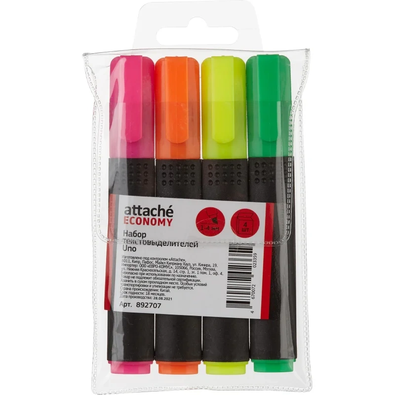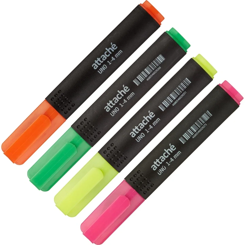 Набор текстовыделителей Attache Economy Uno набор 4 цвета, 1-4мм, со скошенным наконечником