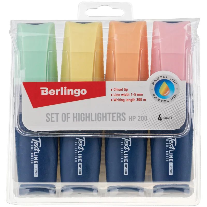 Набор текстовыделителей Berlingo HP200 набор 4 цвета, 1-5мм, скошенный наконечник