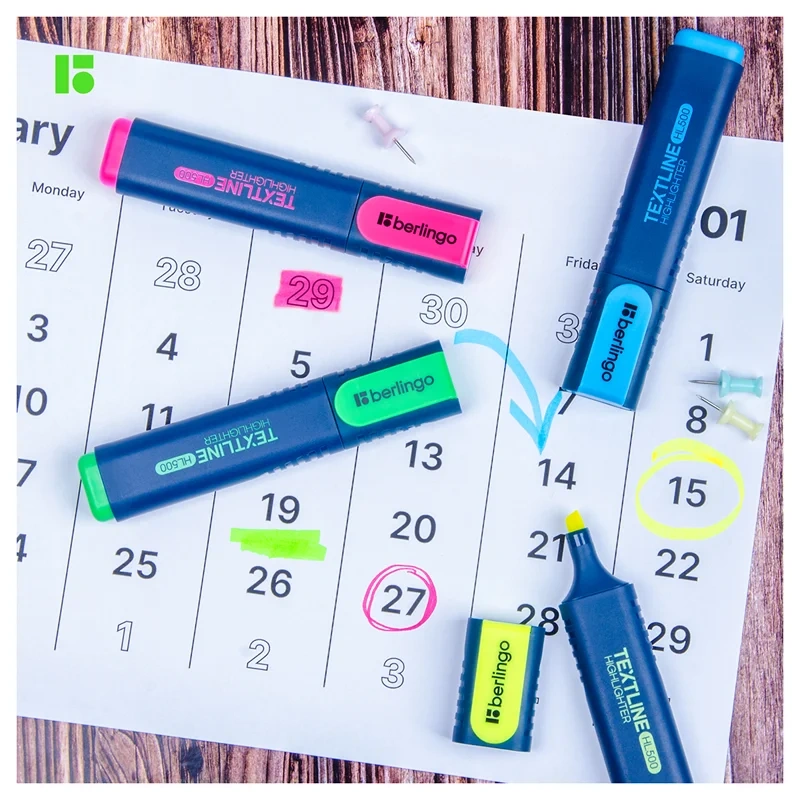 Текстовыделитель Berlingo набор 4 цвета, 1-5мм, скошенный наконечник