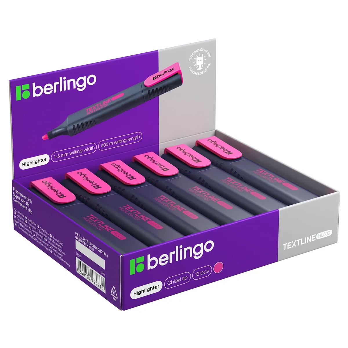Текстовыделитель Berlingo розовый, 1-5мм, скошенный наконечник, 25х15мм