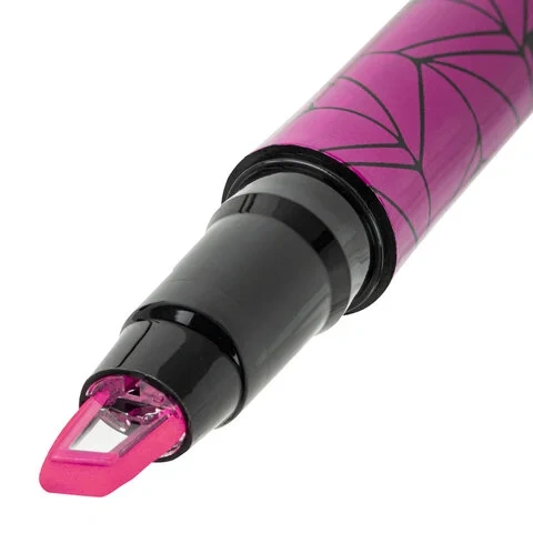 Текстовыделитель розового цвета имеет круглую форму корпуса, диаметр которого 12 мм. Специальный скошенный наконечник выполнен вокруг прозрачного пластика, который позволяет видеть, до какого конкретного места необходимо выделить текст. Толщина линии письма от 1 до 5 мм, что обеспечивает удобство при работе с текстом, напечатанным мелким шрифтом, или таблицами. Благодаря особой водной основе чернила быстро впитываются и тем самым предотвращают размазывание в процессе использования. Текстовыделитель обладает экономным расходом чернил, при этом длина линии письма достигает 300 метров. Прозрачный колпак обеспечивает отличный обзор главной особенности текстовыделителя - наконечника с прозрачным окошком, наличие клипа позволяет фиксировать текстовыделитель на тетрадке, блокноте или ежедневнике.