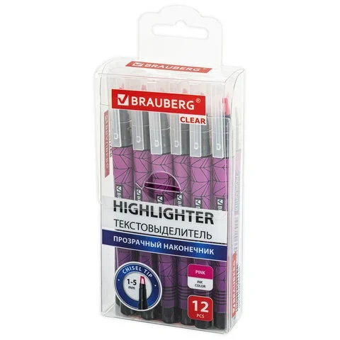Текстовыделитель Brauberg Clear розовый, линия 1-5 мм