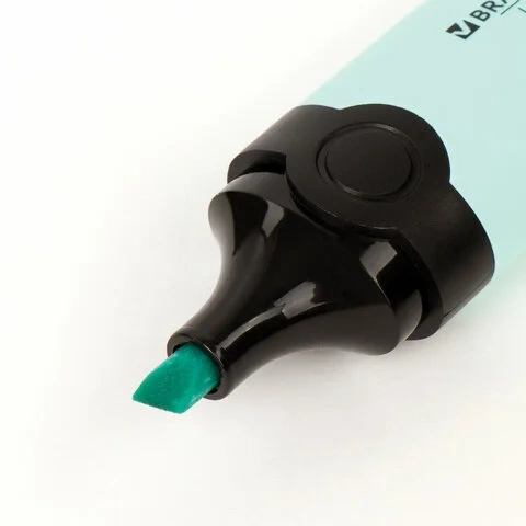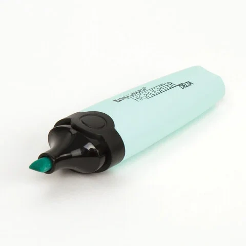 Текстовыделитель бирюзового цвета имеет овальную форму корпуса, диаметр которого 25 мм. Особый пастельный оттенок создает мягкие переходы и позволяет равномерно выделить текст. Скошенный наконечник имеет толщину линии письма от 1 до 5 мм, что обеспечивает удобство при работе с текстом, напечатанным мелким шрифтом, или таблицами. Благодаря особой водной основе чернил текстовыделитель не высыхает без колпачка в течение 8 часов. Текстовыделитель обладает экономным расходом чернил, при этом длина линии письма достигает 300 метров. Чернила быстро впитываются и тем самым предотвращают размазывание в процессе использования. Цвет колпачка и корпуса тексстовыделителя соответствует цвету чернил.
