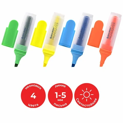 Набор текстовыделителей BRAUBERG 'FLUO' всегда должен быть под рукой! Спешите приобрести в нашем интернет-магазине!