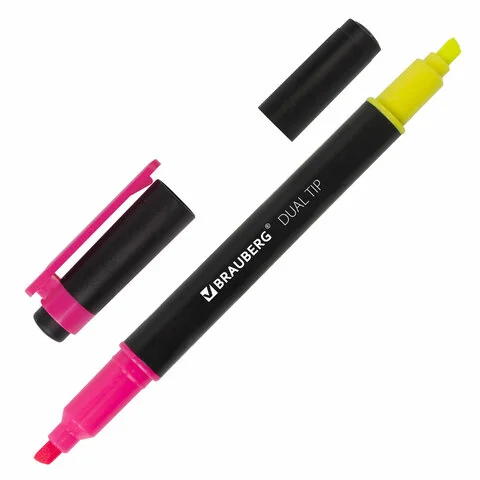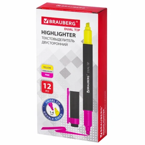 Текстовыделитель Brauberg лимонный/розовый, 1-4мм, скошенный наконечник, двухсторонний