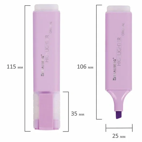 Текстовыделитель лавандового цвета имеет плоскую форму корпуса, диаметр которого 25 мм. Особый пастельный оттенок создает мягкие переходы и позволяет равномерно выделить текст. Скошенный наконечник имеет толщину линии письма от 1 до 5 мм, что обеспечивает удобство при работе с текстом, напечатанным мелким шрифтом, или таблицами. Благодаря особой водной основе чернил текстовыделитель не высыхает без колпачка в течение 8 часов. Текстовыделитель обладает экономным расходом чернил, при этом длина линии письма достигает 300 метров. Чернила быстро впитываются и тем самым предотвращают размазывание в процессе использования. Цвет клипа и корпуса текстовыделителя соответствует цвету чернил.