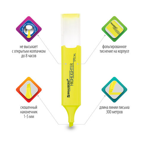 Текстовыделитель Brauberg Special желтый, 1-5мм