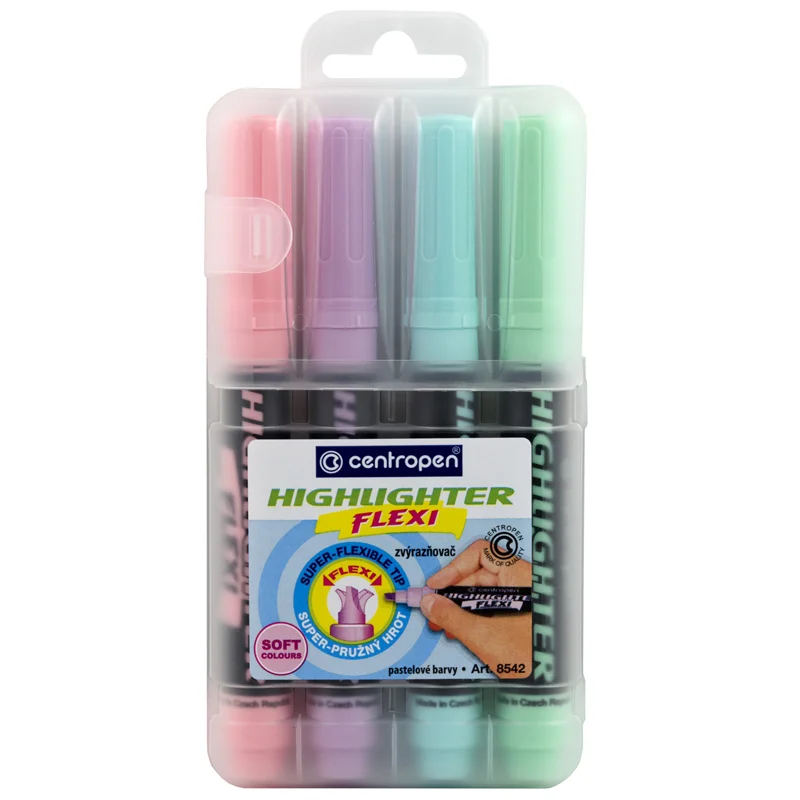 Текстовыделитель Centropen Flexi 8542 набор 4 пастельных цвета, 1-5мм, гибкий пишущий узел