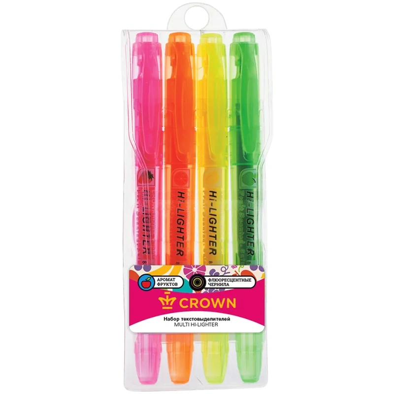 Набор текстовыделителей Crown 'Multi Hi-Lighter Aroma' - четыре вкусных неоновых ароматизированных цвета в одном наборе.