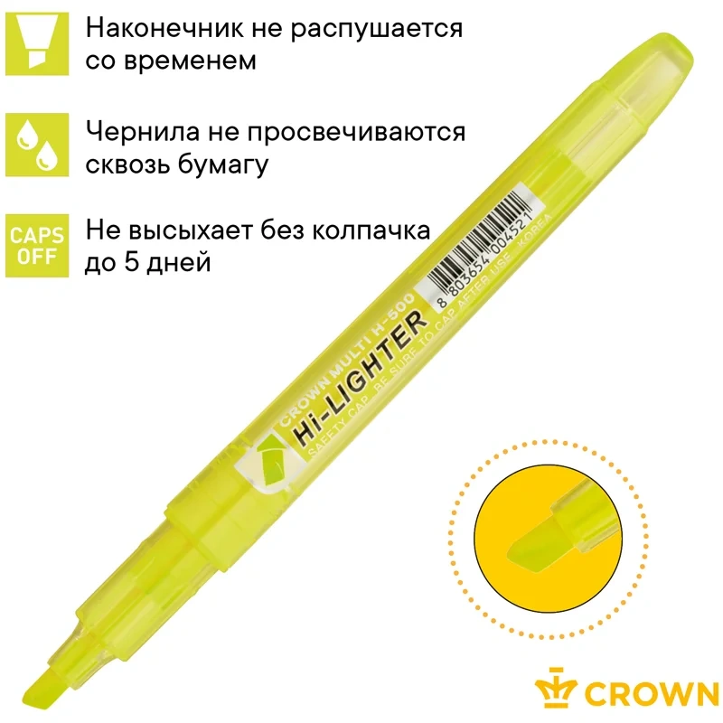 Текстовыделитель Crown 'Multi Hi-Lighter'. Яркий неоновый цвет подходит для выделения в тексте, ежедневнике, тетради. Сделает акценты на самые важные моменты.