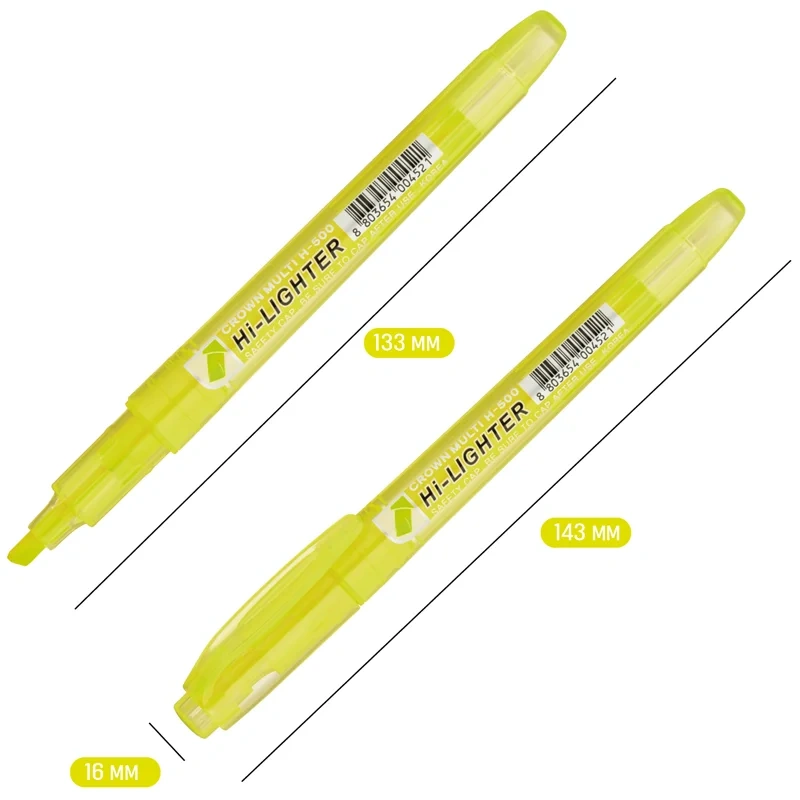 Текстовыделитель Crown Multi Hi-Lighter желтый, 1-4мм, скошенный наконечник