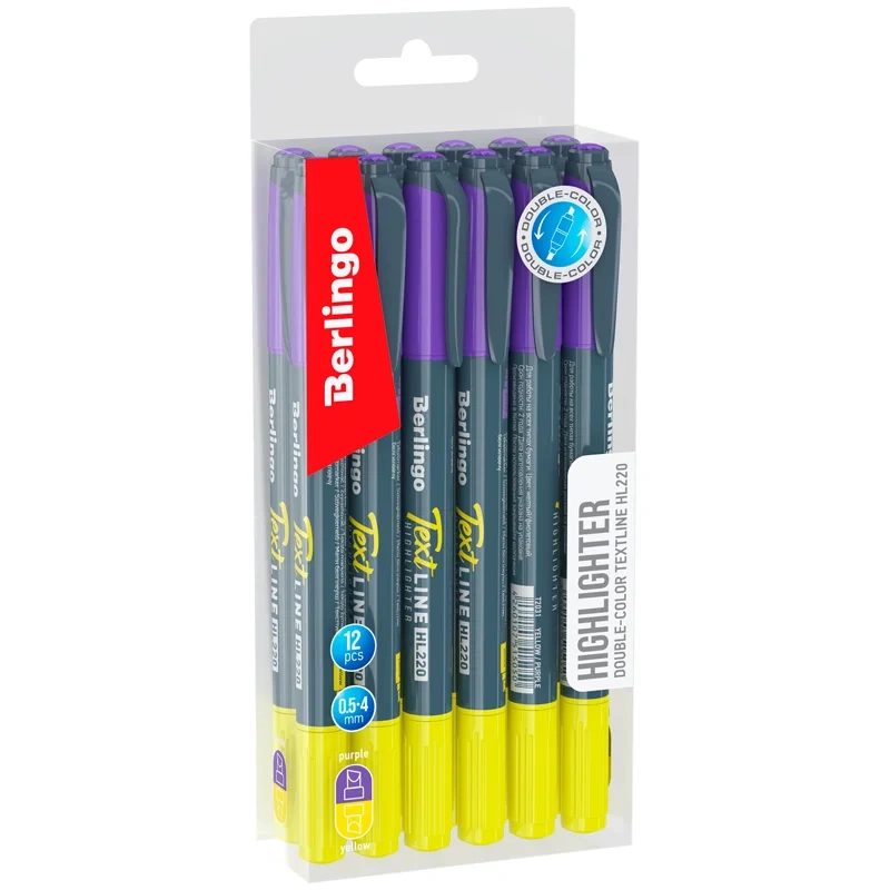 Текстовыделитель двусторонний Berlingo 'Textline HL220' желтый/фиолетовый, 0,5-4мм