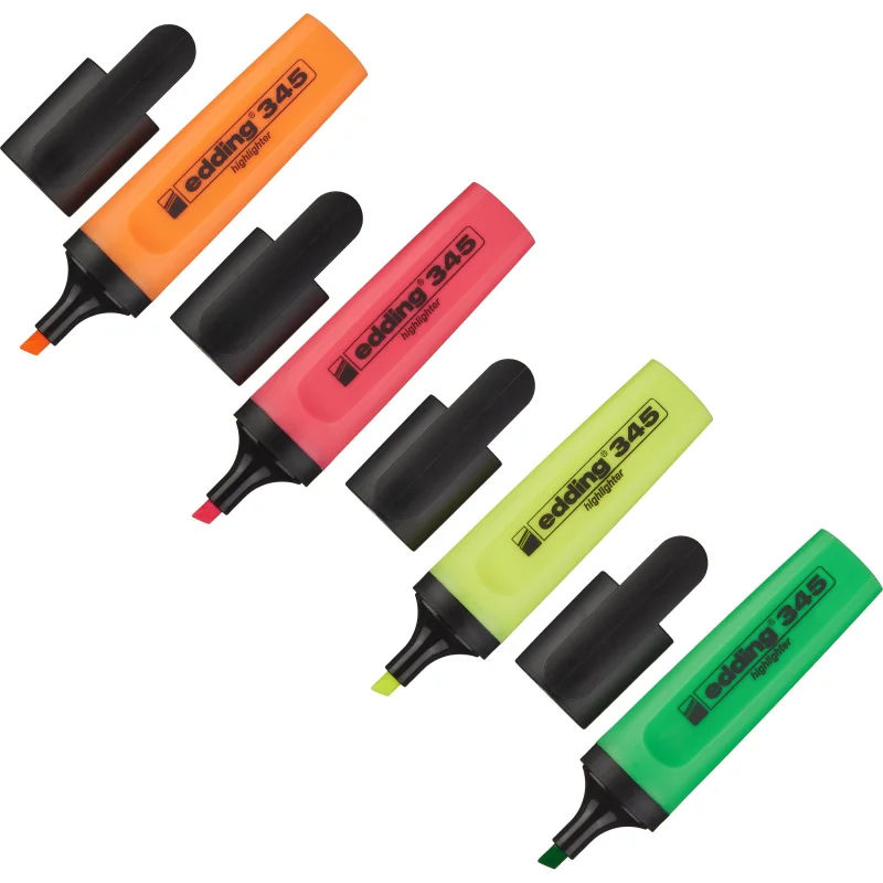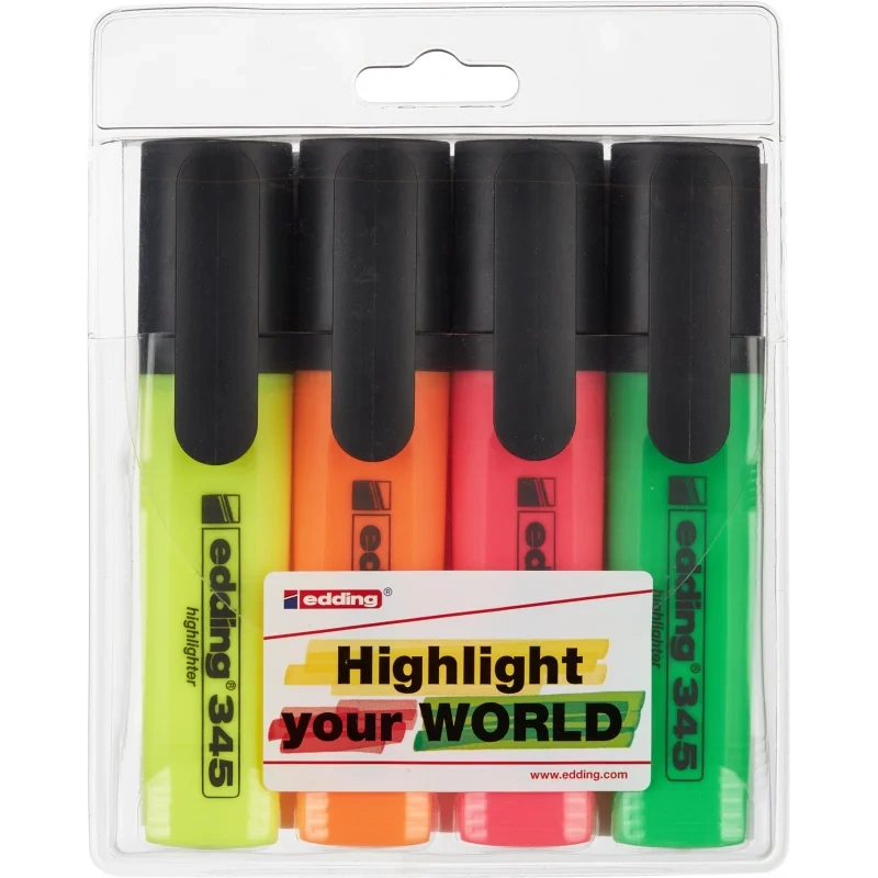 Текстовыделитель Edding 345 набор 4 цвета, 1-5мм, скошенный наконечник