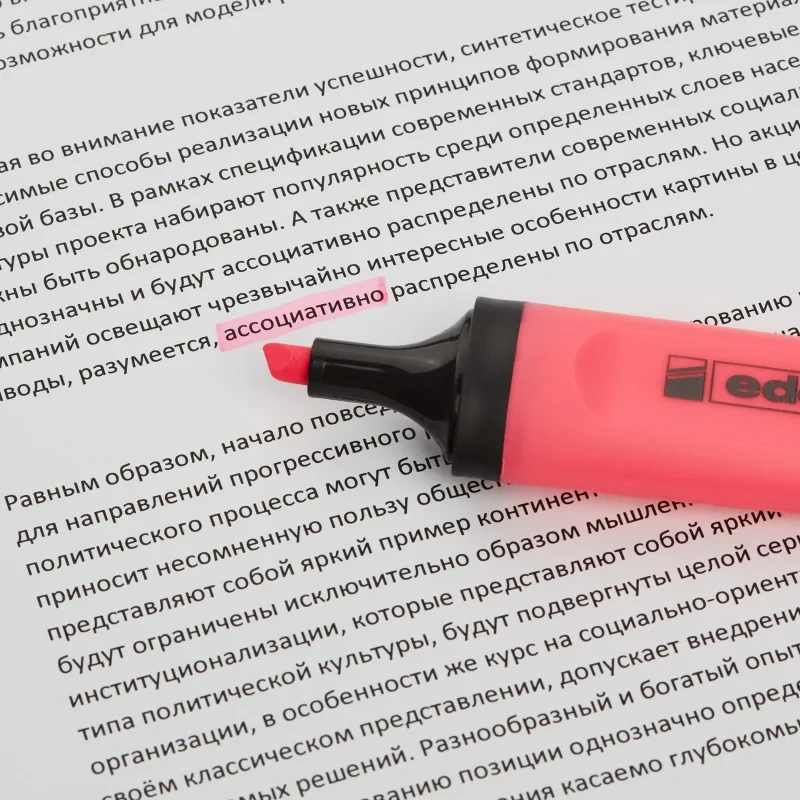 Набор текстовыделителей Edding, предназначенных для маркировки текста на бумаге любой плотности. Эргономичный корпус изготовлен из пластика. Скошенный стержень позволяет проводить линии толщиной от 2 до 5 мм. Флуоресцентные чернила на водной основе обладают высокой светостойкостью и не размазывают текст, напечатанный на струйных принтерах. В наборе 6 цветов: желтый, оранжевый, розовый, зеленый, синий, красный.