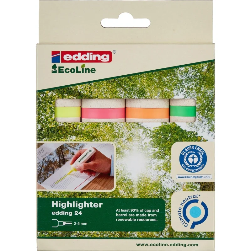 Набор текстовыделителей Edding ECO 24 набор 4 цвета, 1-5мм, скошенный наконечник