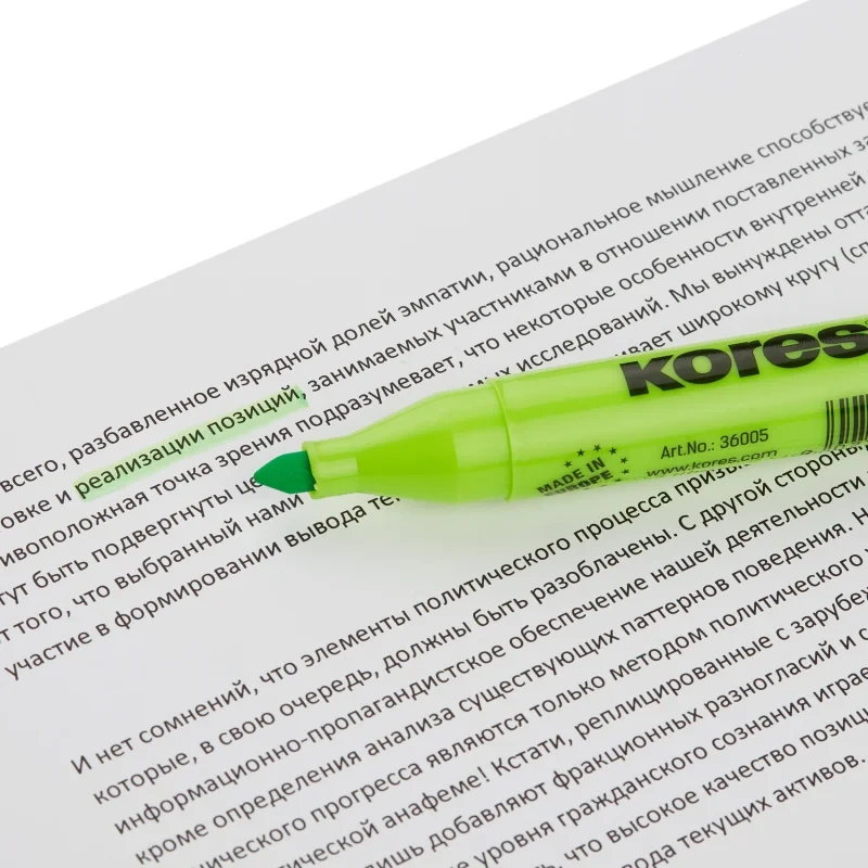 Высококачественный текстовыделитель KORES 36005 со скошенным наконечником.