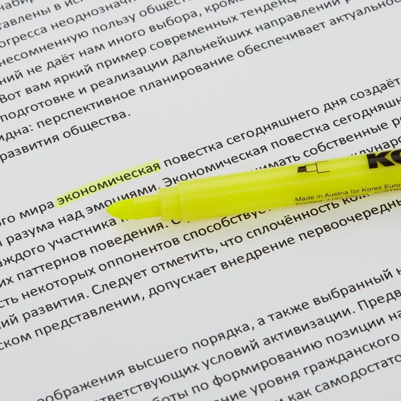 Текстовыделитель Kores желтый, 0.5-3.5мм, скошенный наконечник
