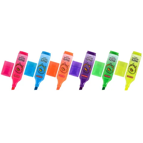 Текстовыделители неоновых цветов: желтый, зеленый, розовый, оранжевый, голубой и фиолетовый имеют прямоугольную форму корпуса диаметром 20 мм. Мягкий скошенный наконечник имеет толщину линии письма от 1 до 5 мм, что обеспечивает удобство при работе с текстом, напечатанным мелким шрифтом, или таблицами. Благодаря особой водной основе чернил текстовыделитель не высыхает без колпачка в течение 8 часов. Чернила с неоновым эффектом обеспечивают неповторимую яркость выделения текста.