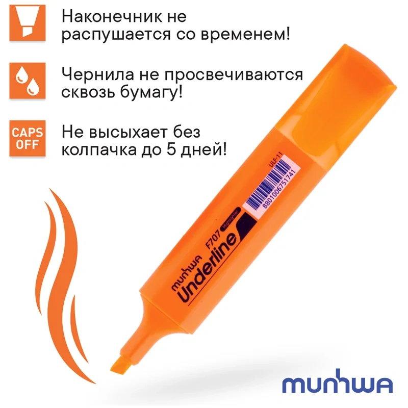 Текстовыделитель Munhwa UnderLine оранжевый, 1-5мм, скошенный наконечник