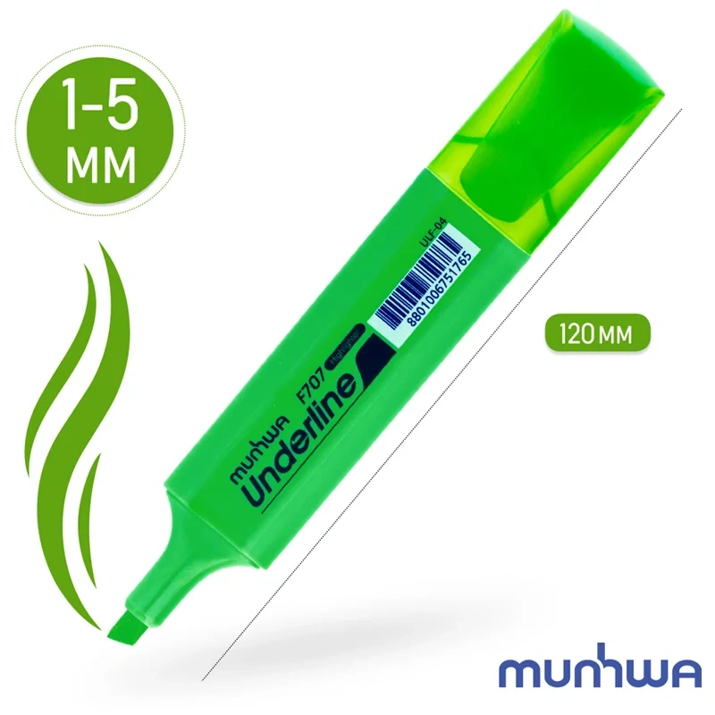 Текстовыделитель Munhwa UnderLine зеленый, 1-5мм, скошенный наконечник