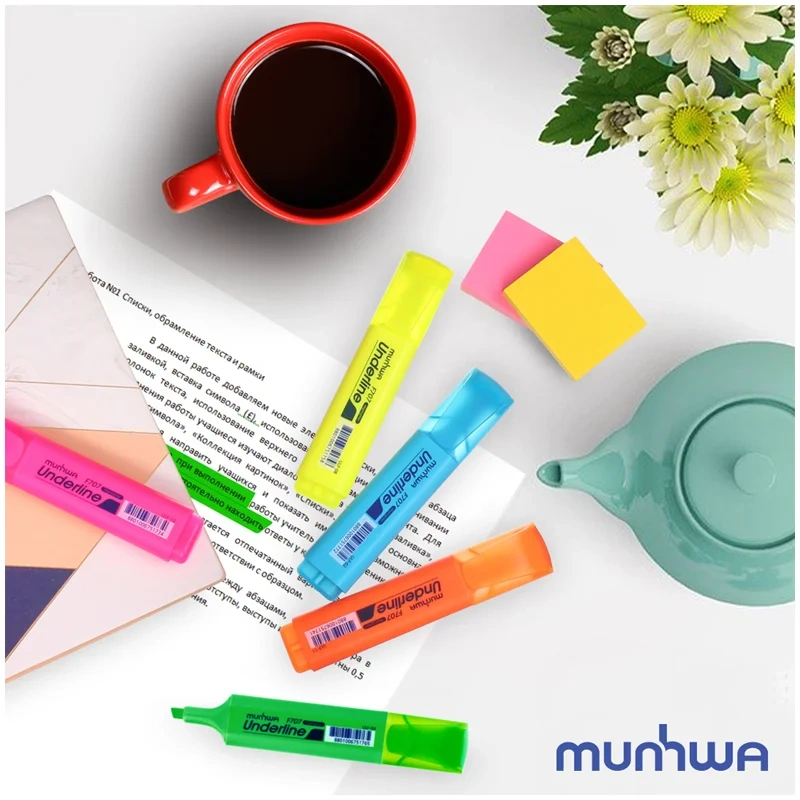 Текстовыделитель MunHwa 'UnderLine' . Яркий неоновый цвет подходит для выделения в тексте, ежедневнике, тетради. Сделает акценты на самые важные моменты.